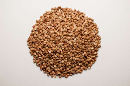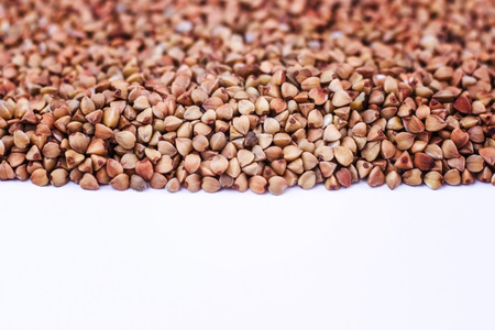 Buckwheat close-up on a white background, diet, healthy diet, texture
