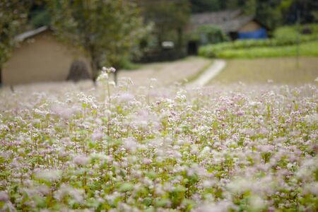Field of buckwheat flowers at Ha Giang, Viet Nam. Ha Giang is famous for Dong Van karst plateau global geological park.