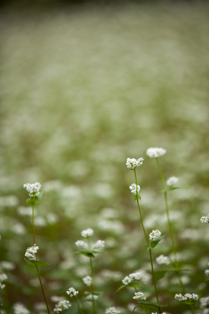landscape of Buckwheat flowers field, many beautiful white Buckwheat flowers blooming in the plantation