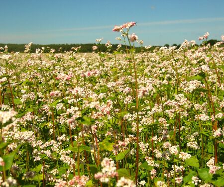 Buckwheat field in Blossom - Buckwheat field on summer day.