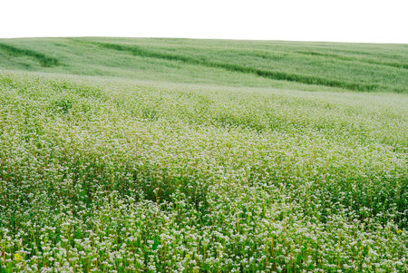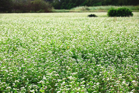Buckwheat (also know Fagopyrum Mill) field covered with snow-white bloom