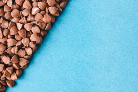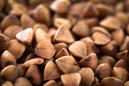 Closeup of nutritious buckwheat illustrating health benefits visually, Detailed image emphasizing wholesome qualities of buckwheat for health and nutrition branding