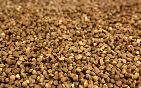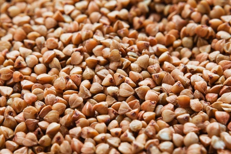 Buckwheat grain closeup, food texture and cook book backgrounds