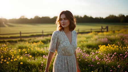 idyllic countryside, featuring a charming farmhouse nestled among rolling hills, and a meandering stream inviting contemplation and relaxation. Generative AI