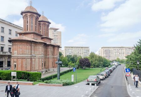 BUCHAREST, ROMANIA - SEPTEMBER 19, 2015. The square with The Church Kretzulescu build by Iordache Cretulescu and Sala Palatului.