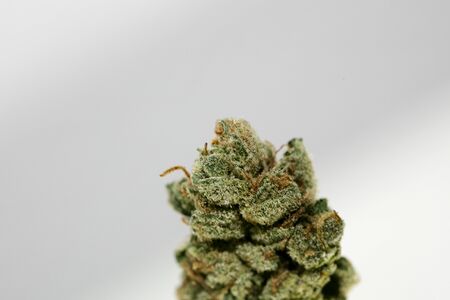Close up of a nug of Kimber agianst a white background, California Medical Marijuana