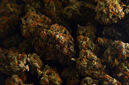 Cannabis buds on dark background. Macro shot of cannabis flower.
