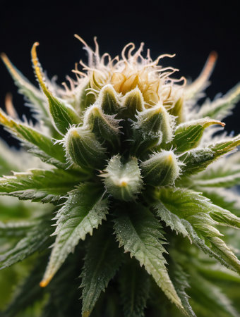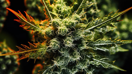 close-up of cannabis flower, with intricate details visible, created with generative ai