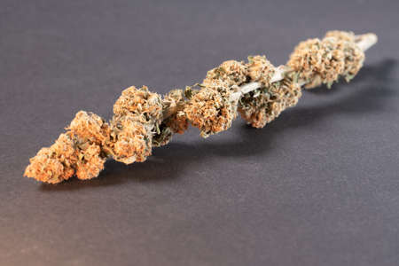 Beautiful cannabis big bud on the dark grey background