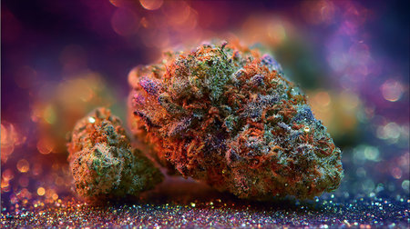 clean thc crystal, trichome sugar cannabis bud macro, generative ai.