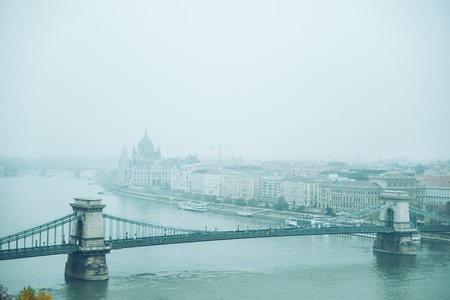 Atmospheric view of Budapest, the Danube, the Chainbridge and the Hungarian Parliament.