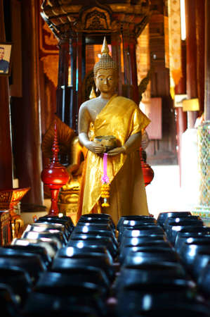 Buddha statue with monk s alms bowl