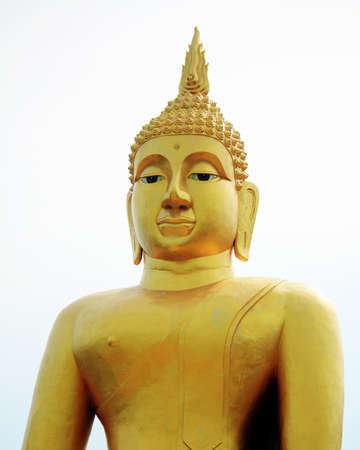 A closeup of the statue of Buddha against the background of the sky.
