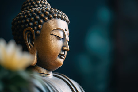This image captures a serene Buddha statue, reflecting tranquility and spirituality. The intricate details and calm expression evoke a sense of peace and meditation.