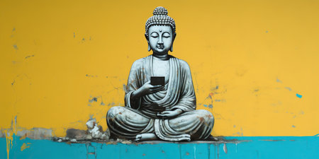 Buddha with a smartphone - a blend of ancient serenity and modern connectivity, reminding us to find balance in the digital age. Generative AI