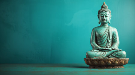 A bronze statue of a meditating Buddha seated in lotus pose with closed eyes and a serene expression conveying the principles of mindfulness and inner peace