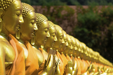 Group of golden buddha statue in Thailand