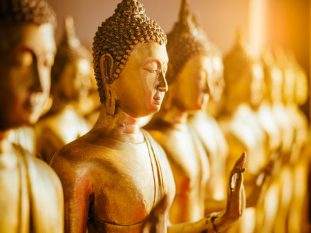 Row of golden buddha statues Bangkok, Thailand