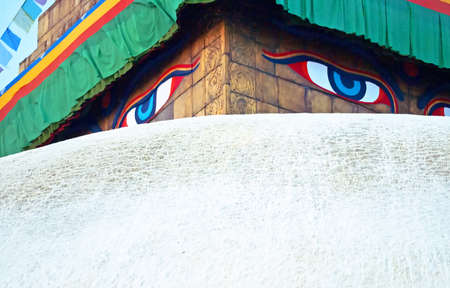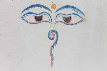 Lord Buddha's eyes. Closeup of Monkey temple, Kathmandu.