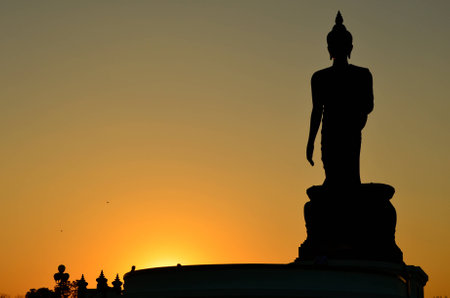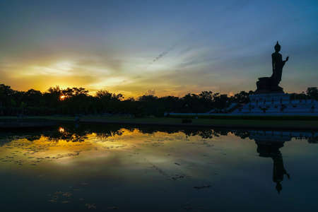 Shadow of buddha in the lanscape in the evening, Beautiful place, sunlight background,Ubonratchatani,Thailand