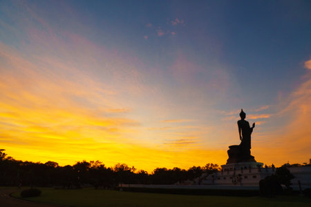 Silhouette of Buddha statue at Phutthamonthon, Nakhon Pathom, Thailand.