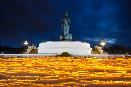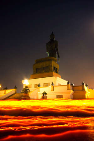 Candle light trail of Buddhism Ceremony Walking with lighted candle around buddha statue