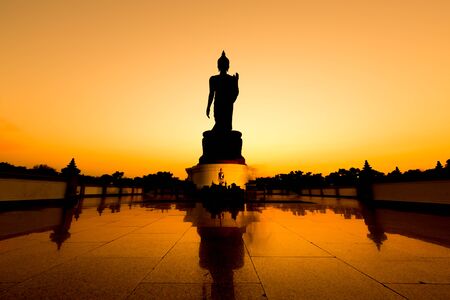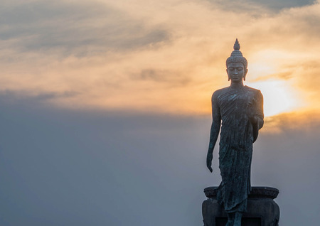 Walking Buddha image with twilight, Thailand