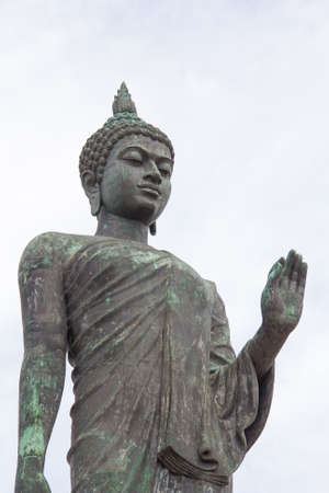 Standing old Buddha statue in temple Thailand