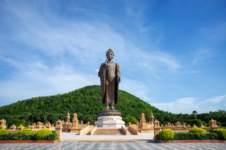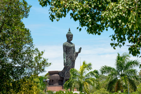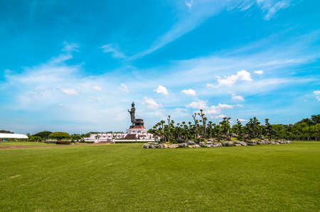 Buddha statue in the park against blue sky at Phutthamonthon, Thailand