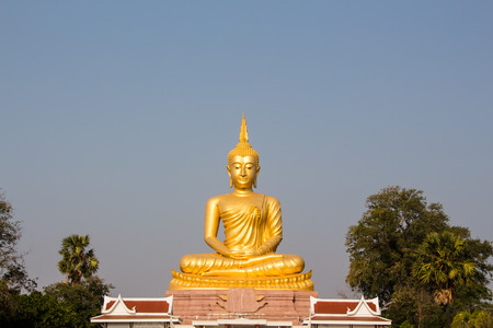 Big golden buddha statue with blue sky, Thailand