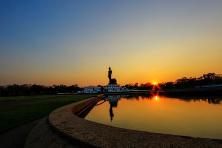 Editorial: Nakon Pathom, Thailand, 9 April 2017. Buddhamonthon is place for Buddhist Dharma with blue sky and sunset in Nakon Pathom Thailand.