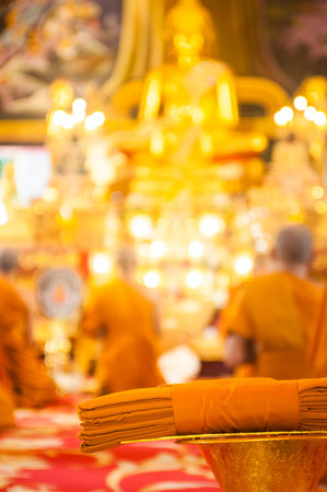 Ceremony of Buddha day, Asian Thai people provide and give the amls to monks.