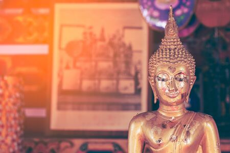 Selective focus close-up shots of of the Buddha images with soft light and layout design for a beautiful religious background.