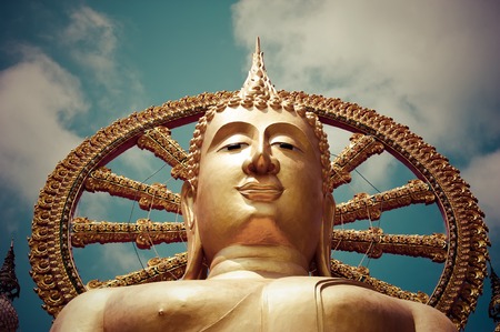 Big golden Buddha statue in Wat Phra Yai Temple. Koh Samui island, Thailand. Image in vintage style