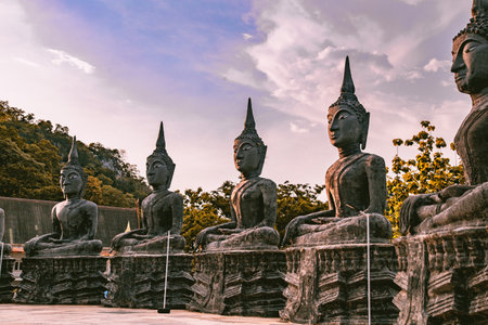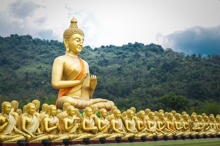 Buddha and Monks Statue in NakornNaYok, Thailand