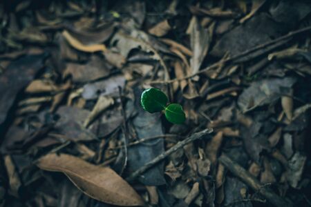 A strong seedling growing in the center trunk of cut stumps. tree ,Concept of support building a future business development focus on new life