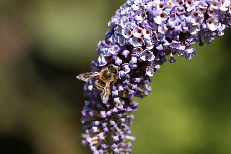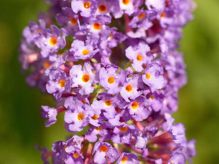 Macro photo of a mauve Buddleja flower under the warm summer sun