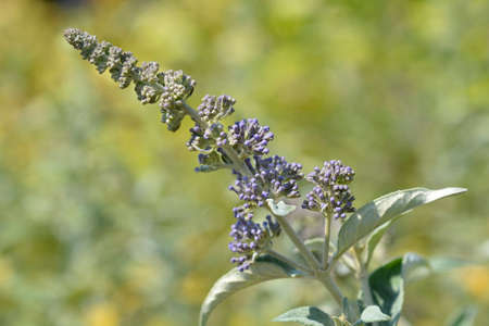 Buddleja fallowiana 'Lochinch' a summer flowering shrub plant with a purple summertime flower commonly known as butterfly bush which is in bloom from July to September, stock photo image