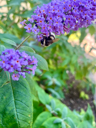 The buddleja davidii bush is blooming in the garden
