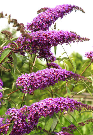 Buddleia - purple flowers with green leaves.