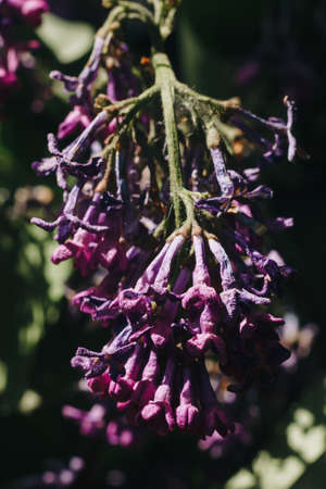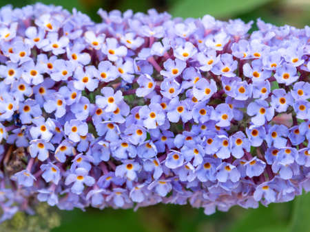 Purple summer Lilac blooming flowers. Botanical blooming garden. Buddleia or Buddleja branches. close up