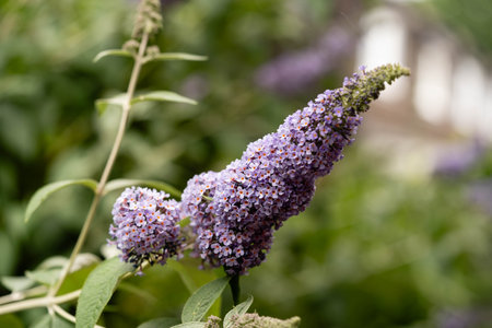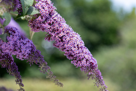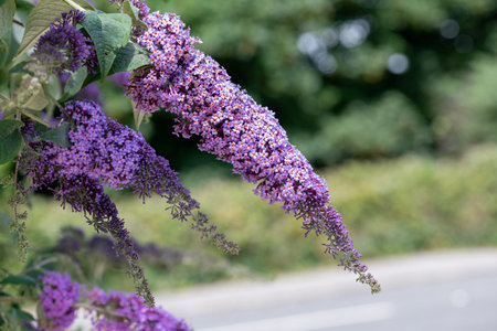flowering branches of Buddleia alternifolius in the park garden