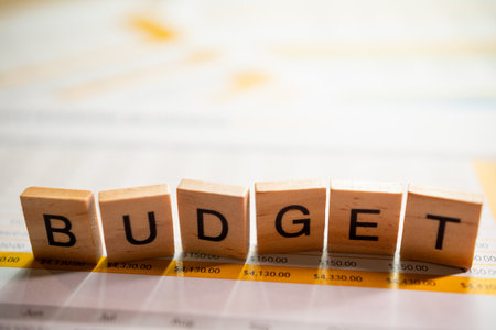 Budget. word in 3d wooden alphabet letters on a bamboo wood background