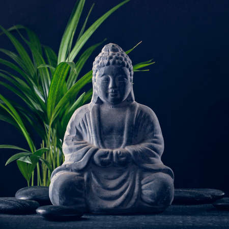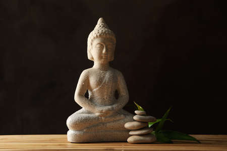Buddha and stones on bamboo background. Zen concept