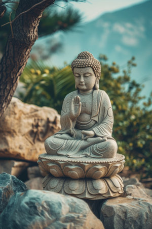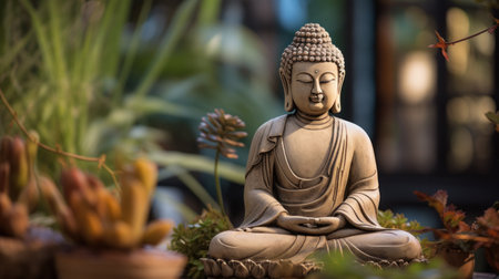 Serene Buddha Statue in Peaceful Garden Setting
