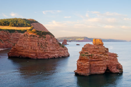 Sandstone stacks at Ladram Bay onthe Jurassic Coast, Devon, UK.