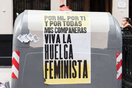 CABA, Buenos Aires / Argentina; March 9, 2020: international women's day. Detail of the march, poster: For me, for you and for all my companions, live the feminist strike