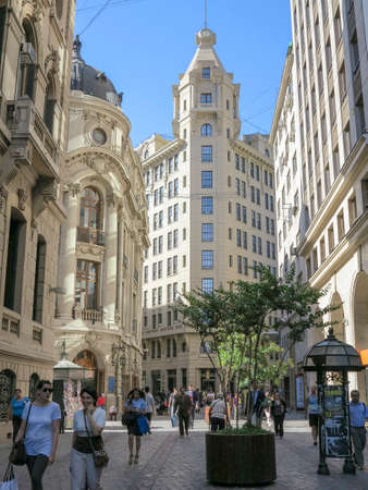 Santiago, Chile - december 10, 2013 - people walking on streets of city of Santiago, capital of Chile in South America