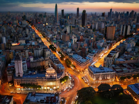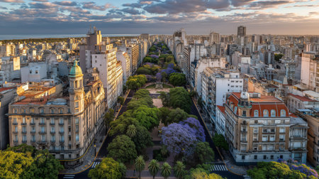 Experience the vibrant pulse of Buenos Aires, Argentina, where timeless colonial elegance fuses with modern innovation along jacaranda-lined avenues and bustling streets under a shifting sky.