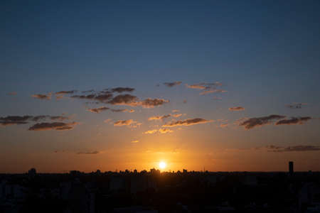 sunset of the urban profile of downtown Cabildo, Buenos Aires, Argentina